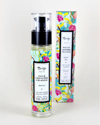 Notre Huile Semi-sèche Corps & Bain Croisière Céladon est composée d'un somptueux mélange d'huiles aux vertus bénéfiques : des Huiles de Sésame, d'Amande Douce & de Tournesol.